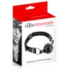 Il se compose d'une boule en caoutchouc, en silicone ou en plastique, attachée à une sangle réglable qui se fixe autour de la tête de la personne soumise. La boule est insérée dans la bouche pour restreindre la capacité de parler et parfois de respirer, ce qui peut augmenter le sentiment de soumission et de contrôle.
