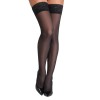 Bas autofixants en voile noir, avec une sublime jarretière en large dentelle et couture à larrière.