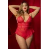 Body rouge grande taille effet babydoll et string assorti