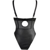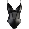 Body sexy en tulle et tissu effet wetlook, structuré par des ajouts en tulle noir transparent et une découpe en rond dans le dos.