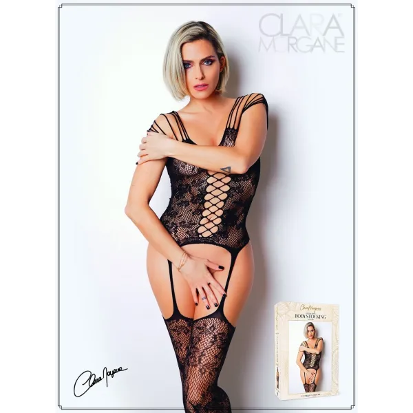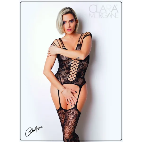 Magnifique Bodystocking en dentelle florale, Clara Morgane, avec ces bretelles qui tombent légèrement sur les épaules en cascade. L’ouverture sur le ventre avec laçage croisé et la dentelle florale sur la poitrine viennent sublimer vos courbes. Les bas-jarretières dans cette même dentelle florale invitent au toucher et à l’érotisme.