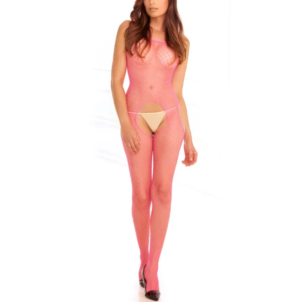 Bodystocking rose fluo résille ouvert à...