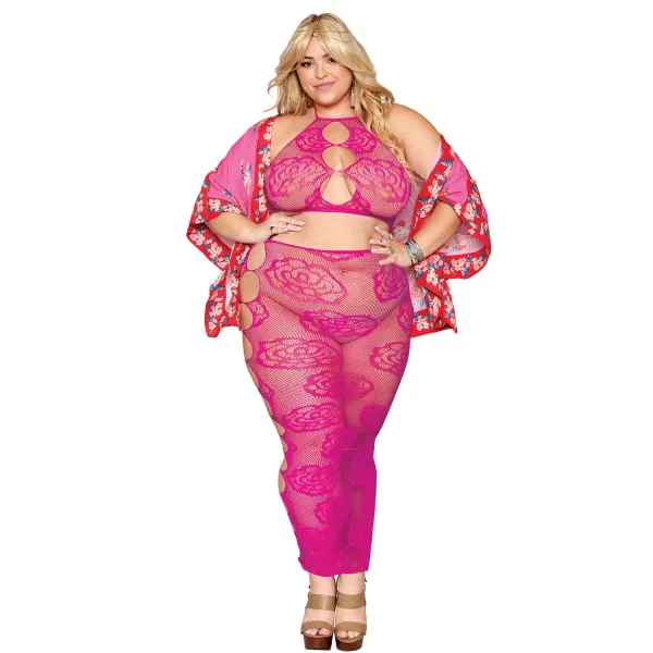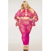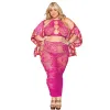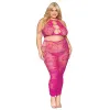 Ensemble lingerie rose, grande taille, composé d'un Soutien-gorge et d'une jupe longue en filet résille de Dreamgirl, vente de lingerie sexy et sensuelle.