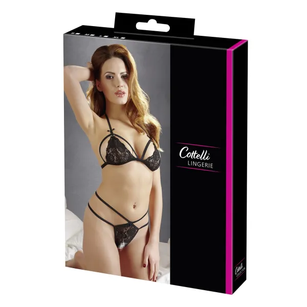 Soutien-gorge en dentelle noire avec bonnets détachables et string de la collection Cottelli.