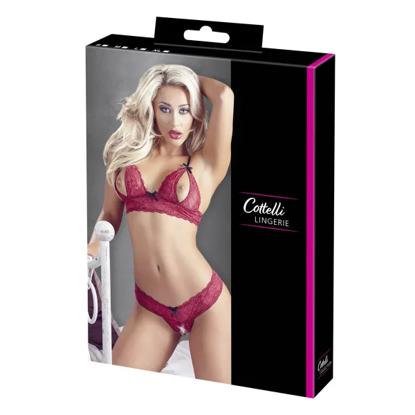 Soutien-gorge, bonnets ouverts, en dentelle rouge et string assorti de la collection Cottelli. Nipples non inclus.