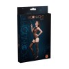 La marque de lingerie Moonlight présente son modèle n° 15, un ensemble coquin en résille composé d'un body et de bas assortis mariant de manière très sensuelle des motifs floraux et des surfaces transparentes.