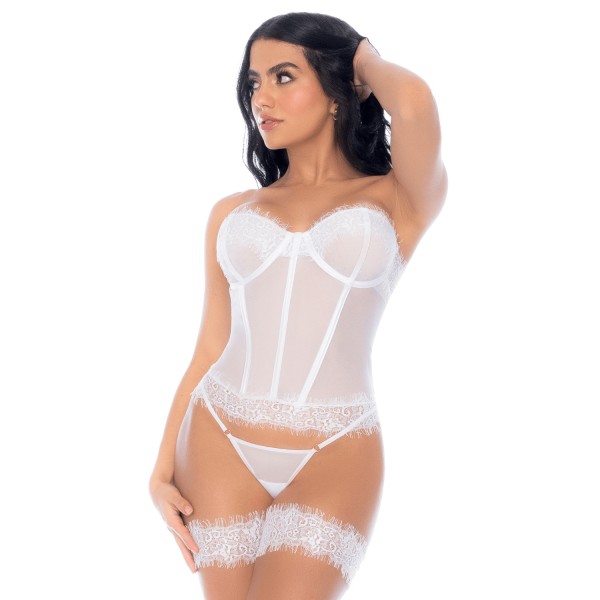 Offrez-vous cet ensemble bustier, string et jarretières en dentelle blanche et laissez la séduction opérer !