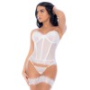 Ensemble 4 pièces blanc, bustier, string et 2 jarretières - MAL8933WHT