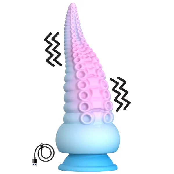 Gode ventouse tentacule Kraken vibrant 18 cm rose et bleu USB - WS-NV100