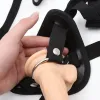 Réglable en tour de taille max 110cm. Livré avec 2 anneaux, un en acier de diamètre 4.5cm et un en silicone extensible permettant de s'adapter à tout diamètre de gode.