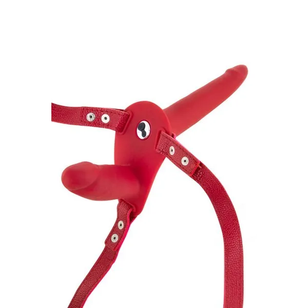 Jouet sexuel comprenant deux godes connectés à une ceinture que l'on peut porter autour de la taille. Les godes sont de tailles différentes, l'un plus petit et l'autre plus gros . Ce type de jouet est idéal pour les jeux de couple et pour explorer de nouvelles sensations.