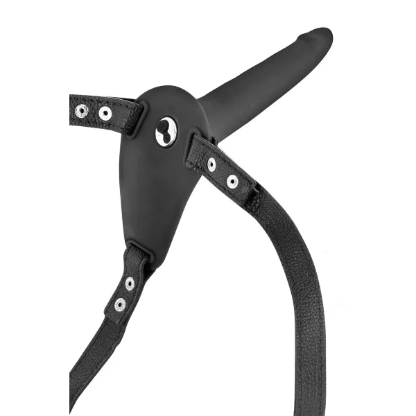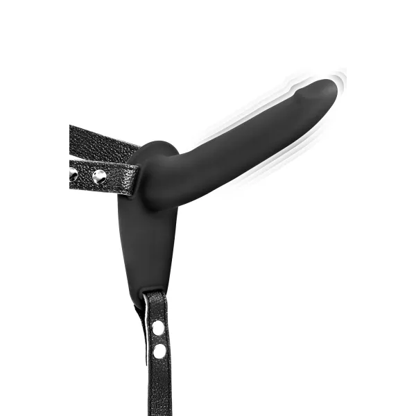 Pour des jeux érotiques saphiques ou hétéro, voici un gode ceinture noir et vibrant qui sera porté par une femme. Pourquoi ? Tout simplement parce que ce gode ceinture vibrant noir n'est pas creux. Le harnais est en simili cuir noir est parfaitement ajustable. Avec cette stimulation, pourquoi ne pas en ajouter une autre. C'est exactement le cas car ce modèle est vibrant et se recharge sur USB