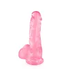 Un gode rose en matière jelly haute qualité. Ce gode rose translucide est assez flexible et est avec gland, testicules et ventouse.