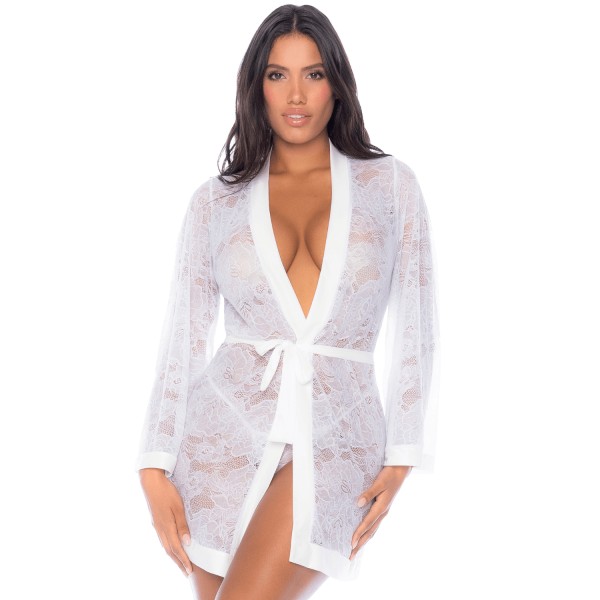 Peignoir en dentelle blanche - MAL7611WHT
