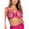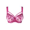 Soutien-gorge emboitant en tulle et broderies rose fuchsia, parfaitement ajustable avec ses doubles bretelles et l'élastique sur le haut des seins.