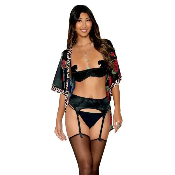 Ensemble 3 pièces noir en dentelle -...