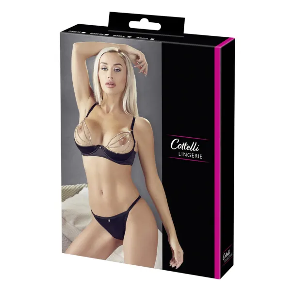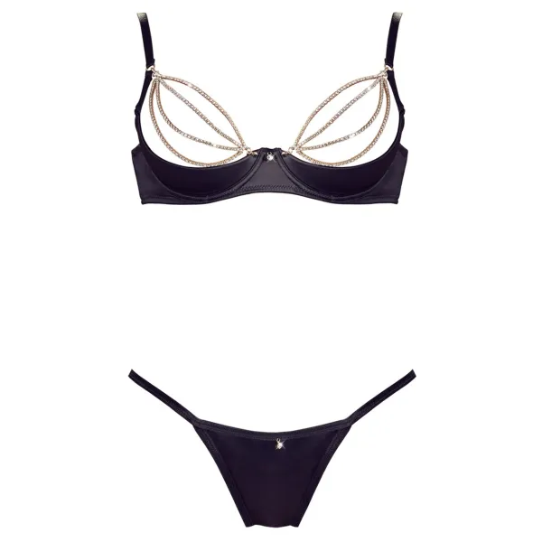 Soutien-gorge sexy demi-seins en satin avec chainette et string - OR2221179BLK