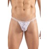 Mini String en dentelle noire florale blanche avec fine dentelle 3 bandes dans une matière douce et confortable. Mini String dentelle blanche de la collection All Square, marque LOOKME pour les hommes sensuelles et viriles.